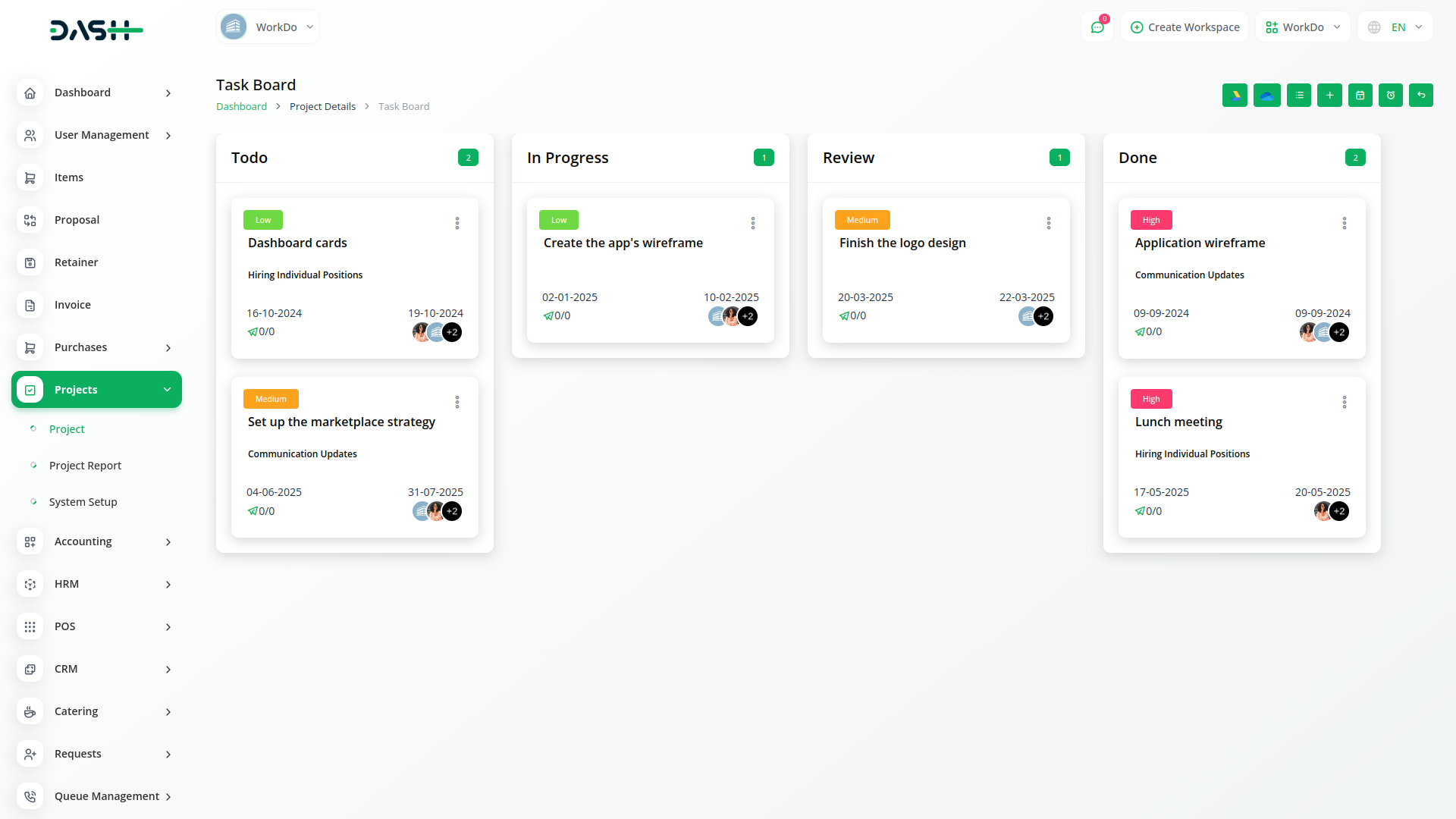 Get an overview of the total number of projects, tasks, bugs, and members. A visual representation of the task overview and project status can help you estimate the progress on each task. Lastly, you can check the top due task.